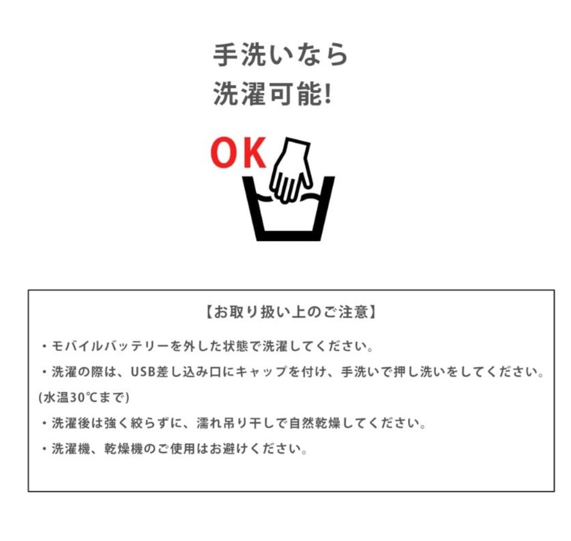 モバイルバッテリーを外した状態で洗濯してください。